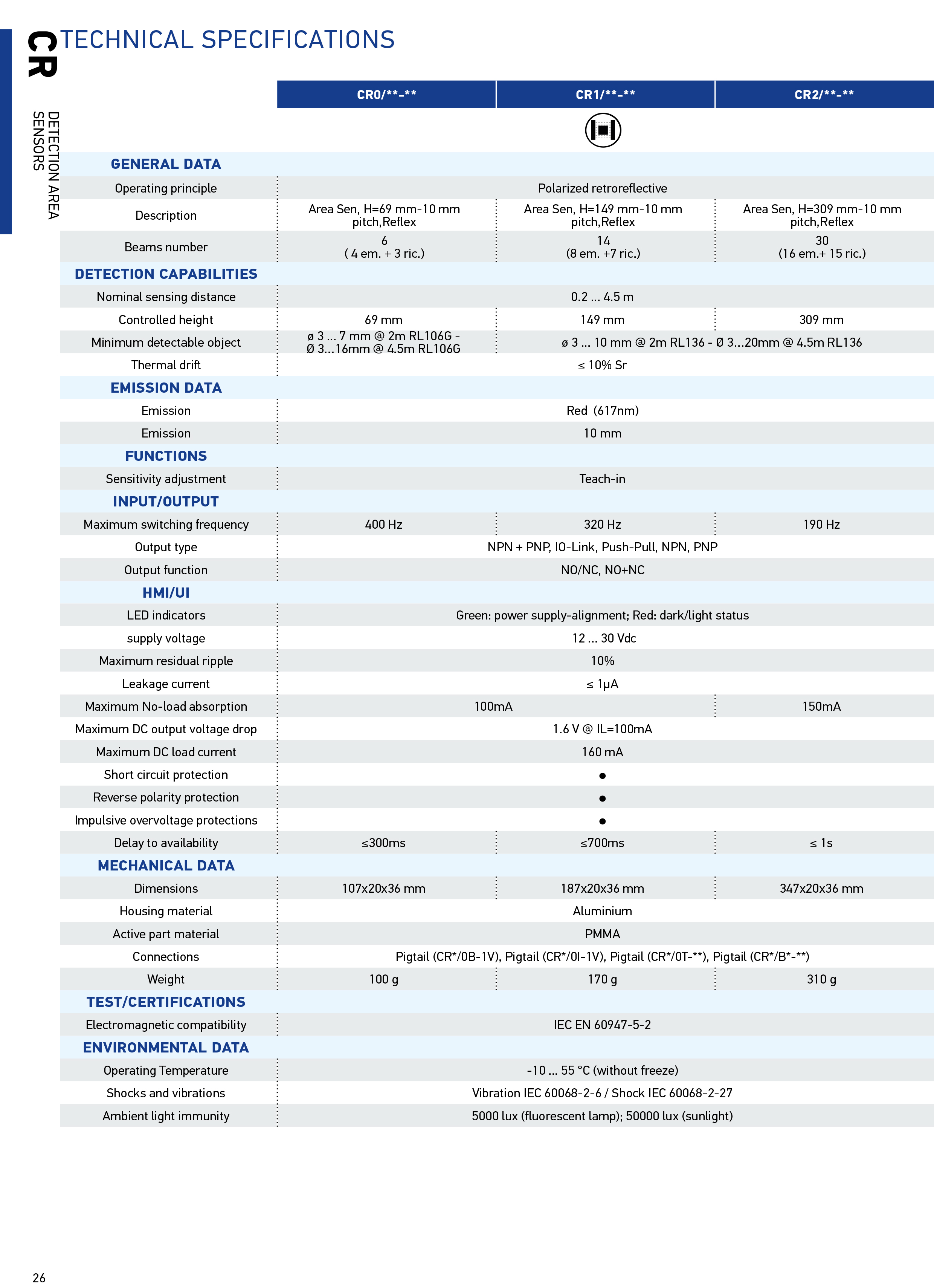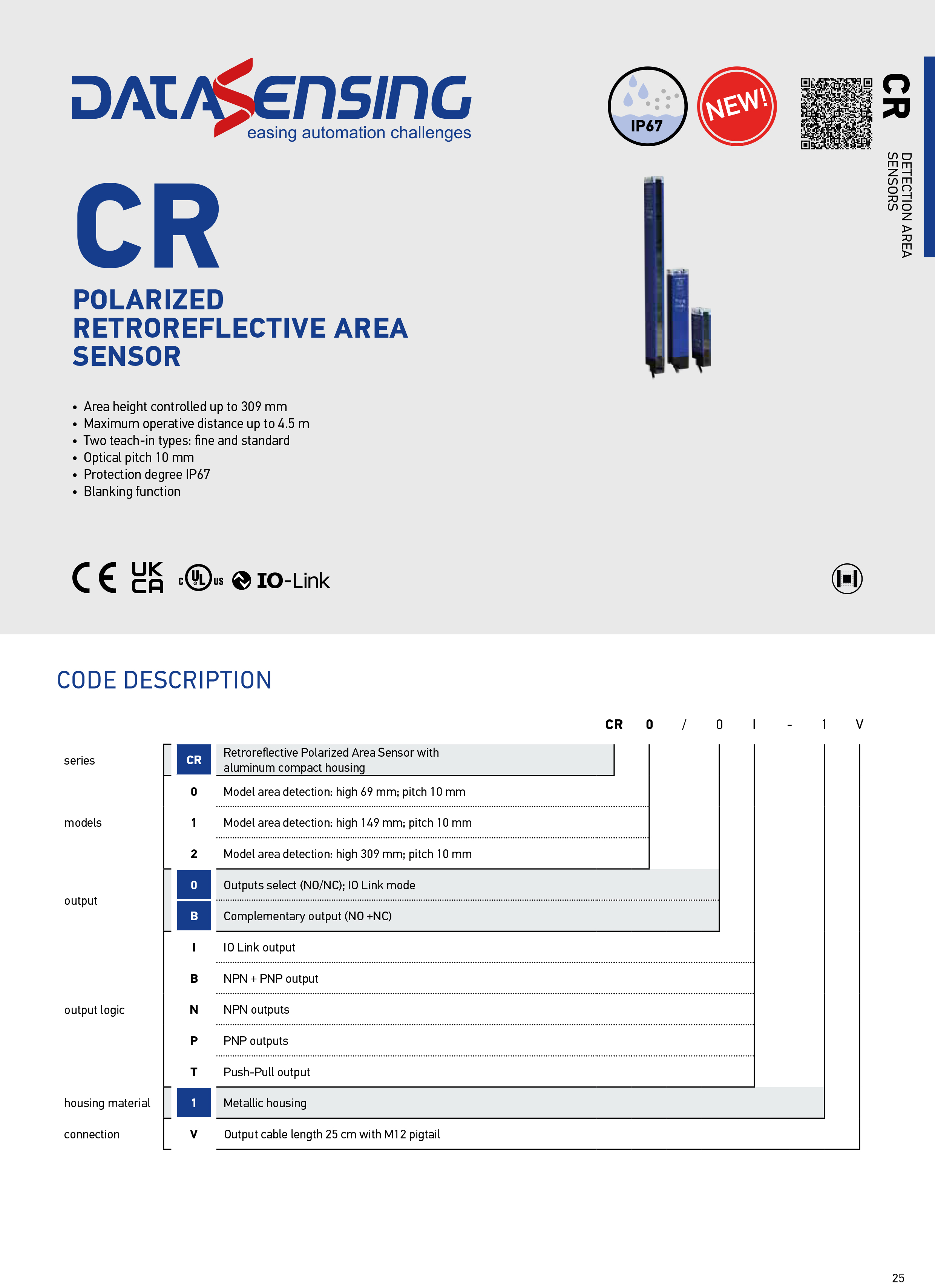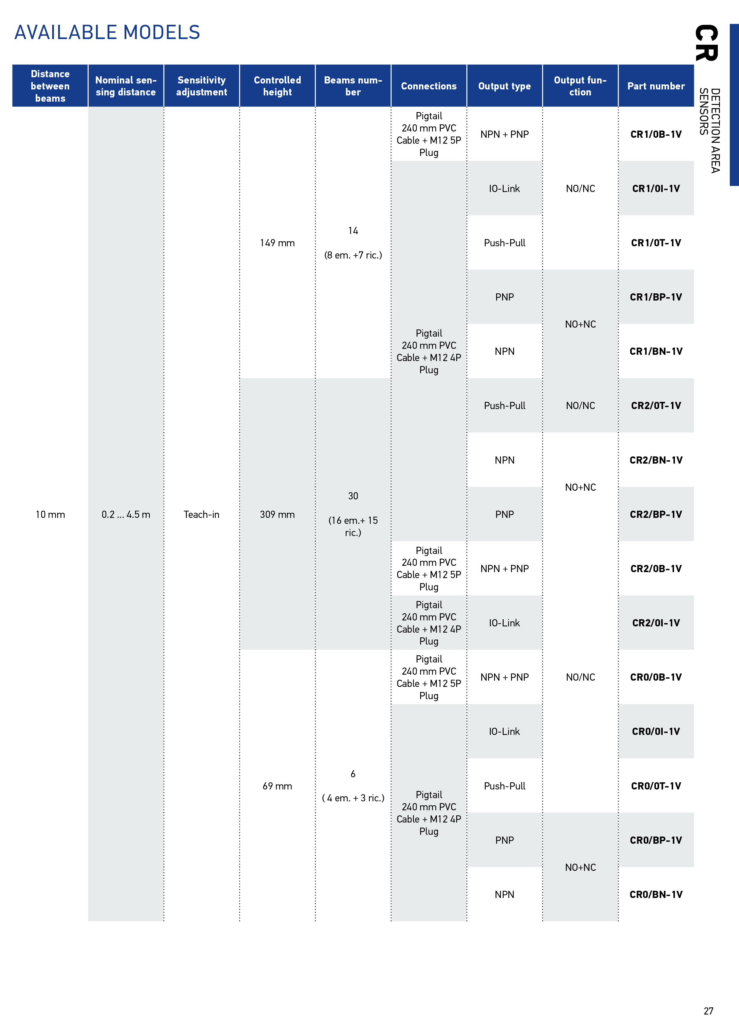 Итальянские датчики зоны обнаружения Datalogic CR1/BP-1V