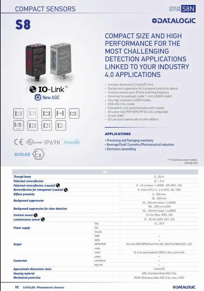 Фотоэлектрический датчик Datalogic S8-PH-5-B51-PP