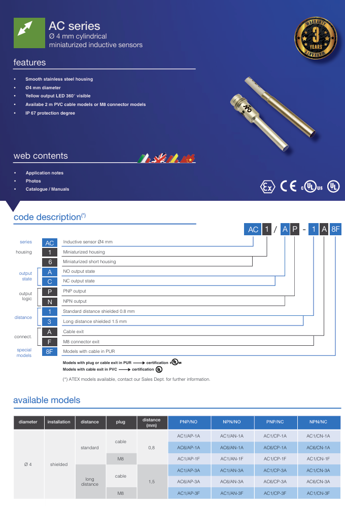 Цилиндрический фотоэлектрический датчик серии AC1/CP-1F для сбора данных.