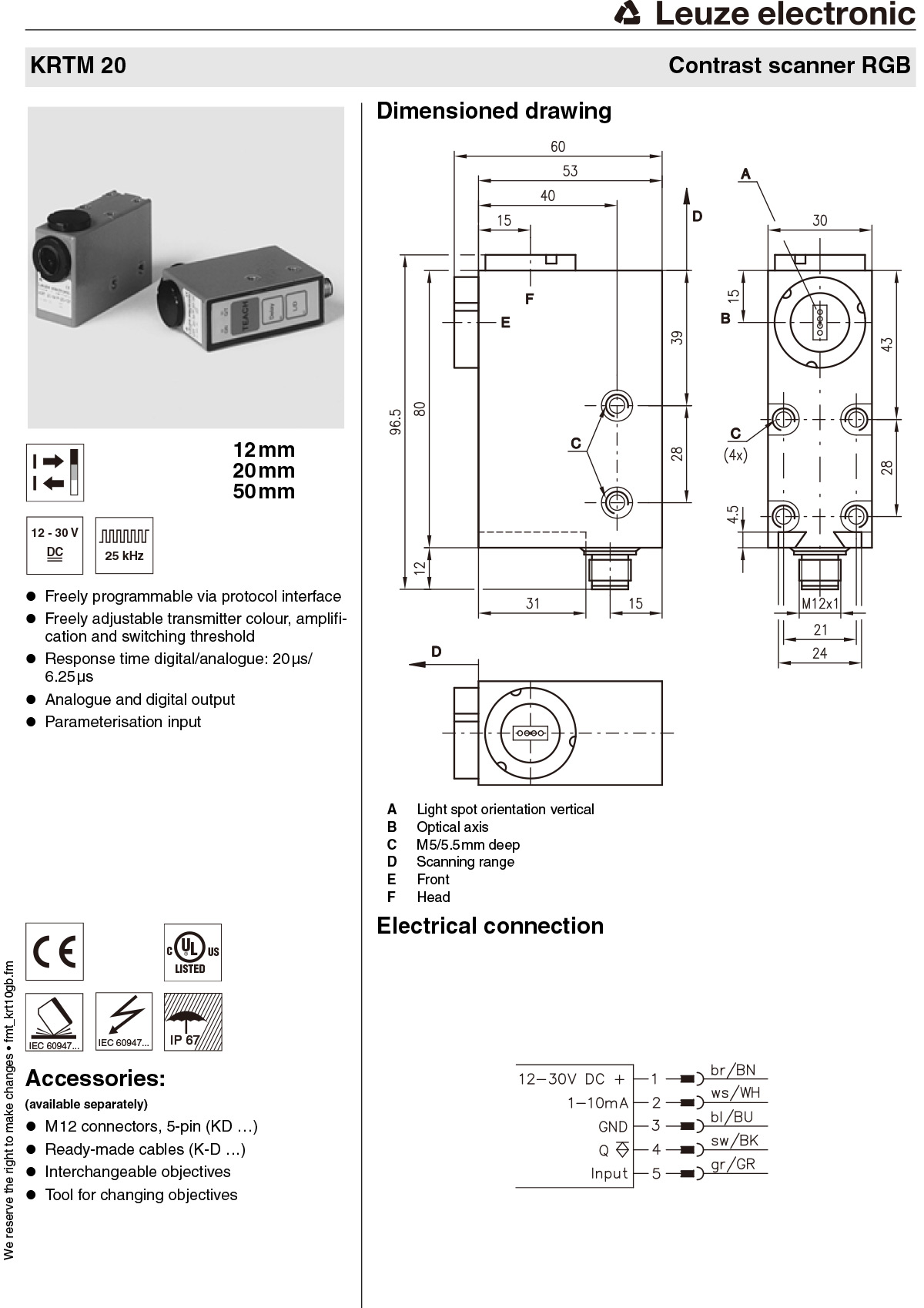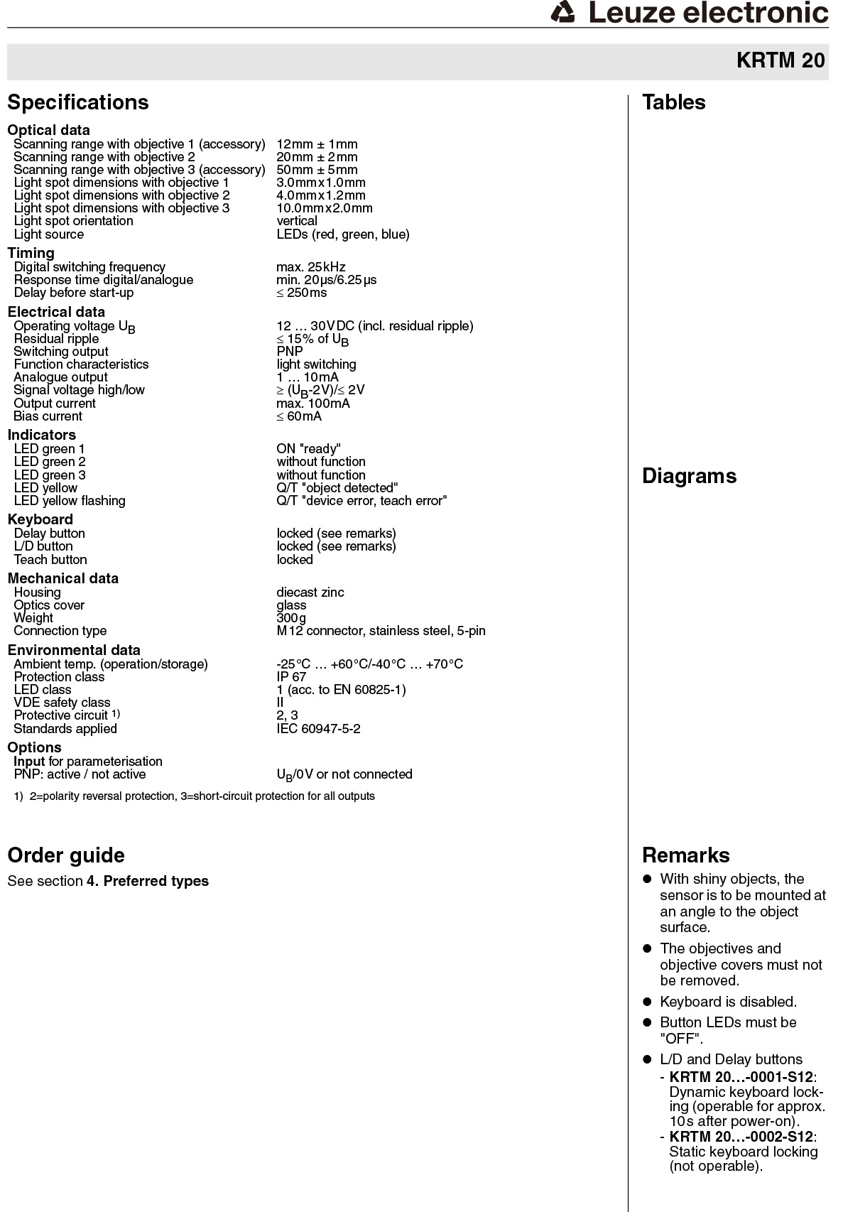 В наличии Немецкий LEUZE KRTM 20M/V-20-0001-S12 Контрастный датчик
