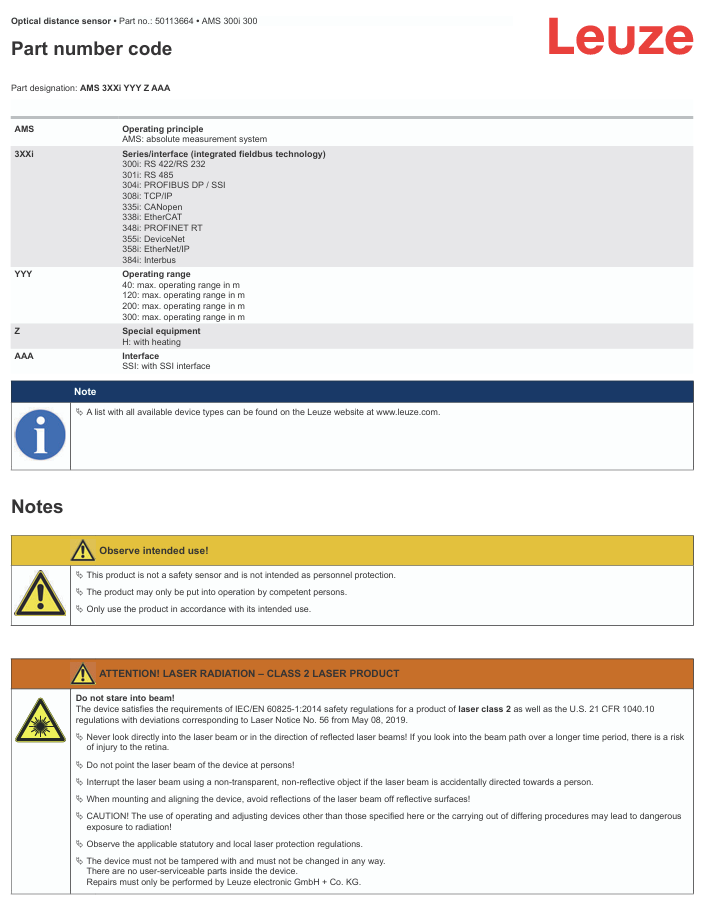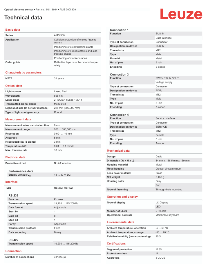 LEUZE AMS 300i 300 Оптический датчик расстояния