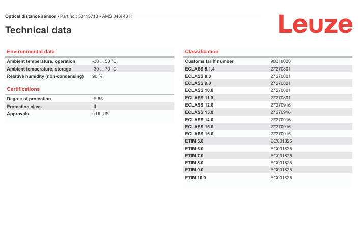 LEUZE AMS 348i 40 H Оптический датчик расстояния