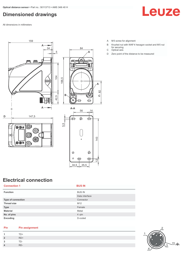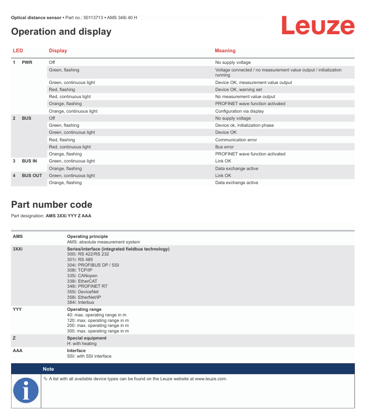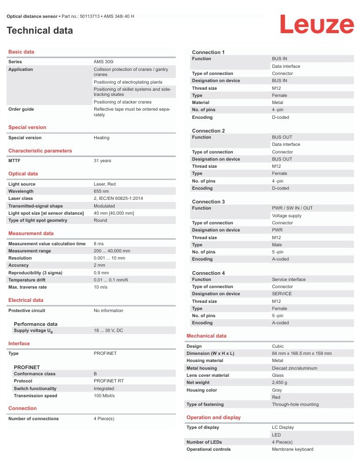 LEUZE AMS 348i 40 H SSI Оптический датчик расстояния