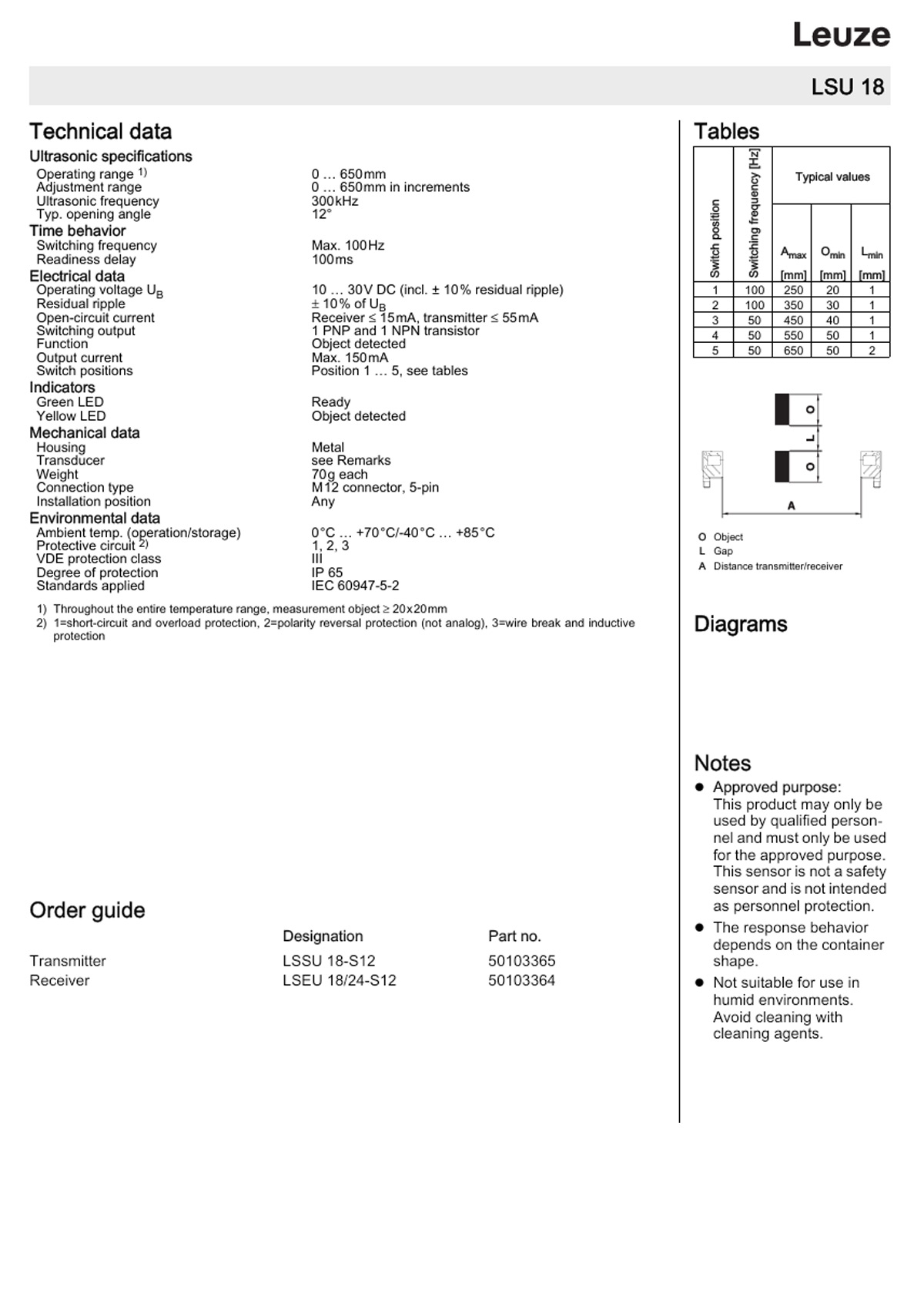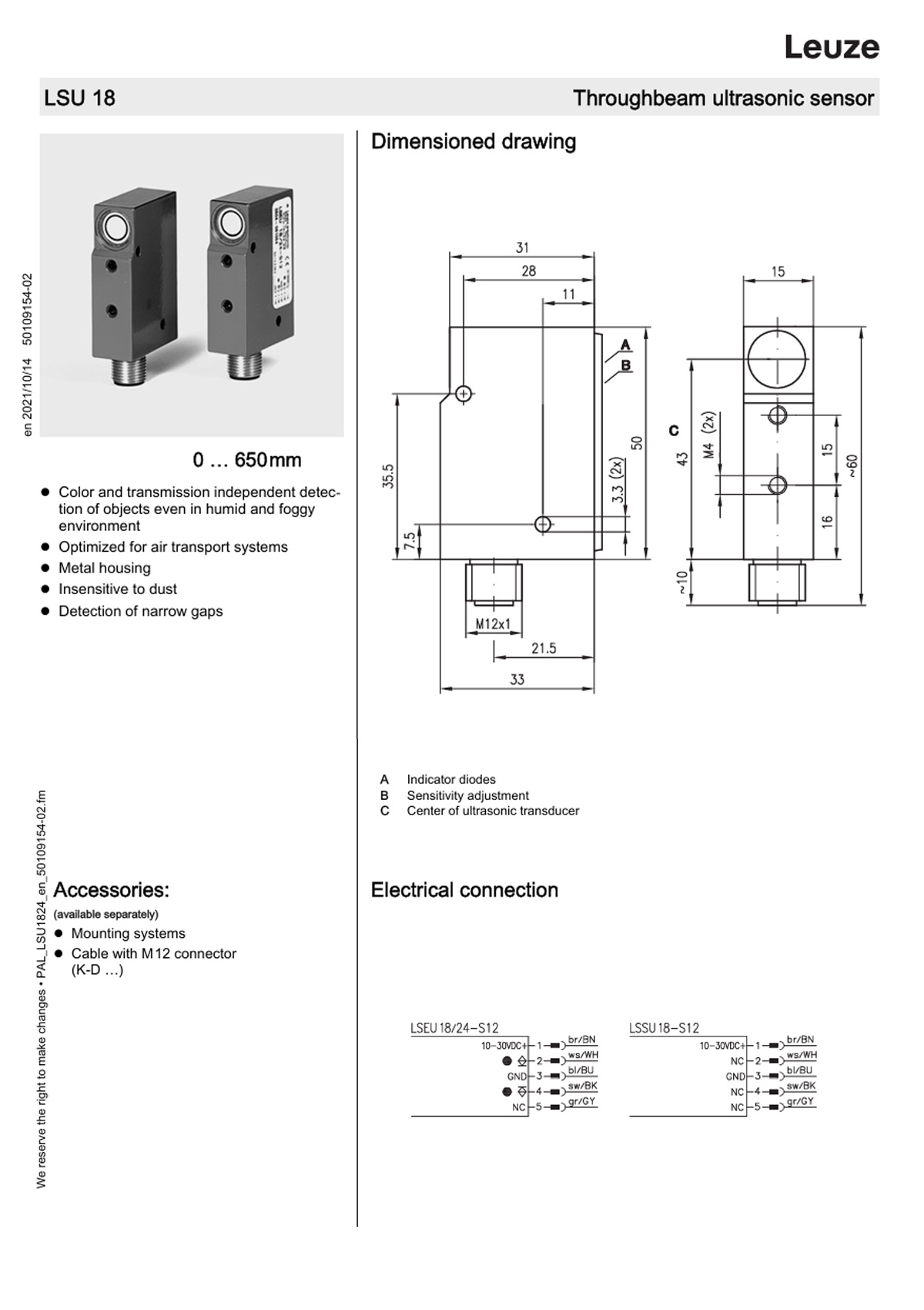 В наличии Немецкий LEUZE LSEU 18/24-S12 Приемник сквозного ультразвукового датчика
