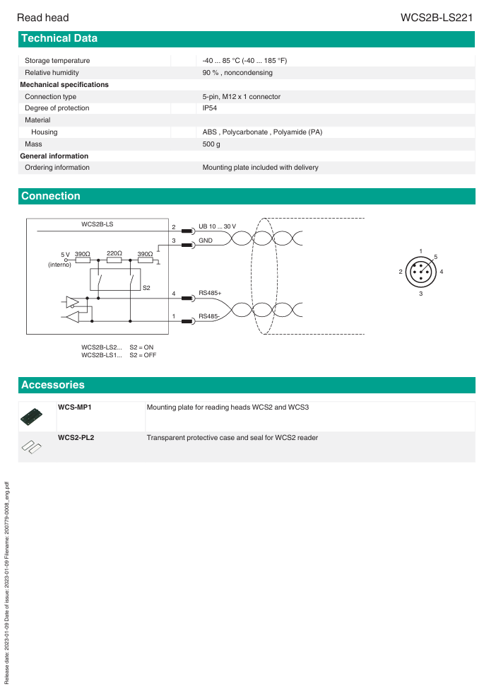 Считывающая головка, интерфейс RS-485, с резистором на клемме RS-485.